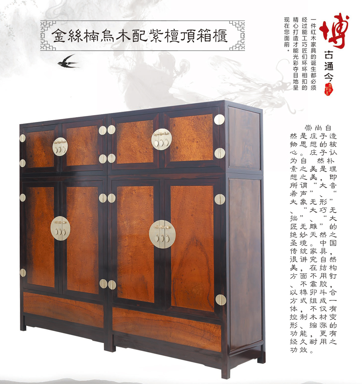 金林楠鳥木配紫檀頂箱柜